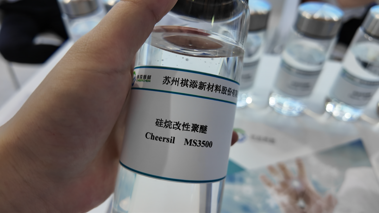 祺添新材依托三十余年的技术积累与持续研发投入,构建了完善的产品矩阵。本次展会上,公司重点展示了硅烷改性聚醚Cheersil MS系列和异氰酸酯基硅烷Cheersil 907系列两大核心产品,以及反应性硅油、球形硅树脂Cheerspearl 7150等特色功能材料。这些产品凭借优异的性能,为建筑、汽车、电子等行业提供了精准的解决方案。